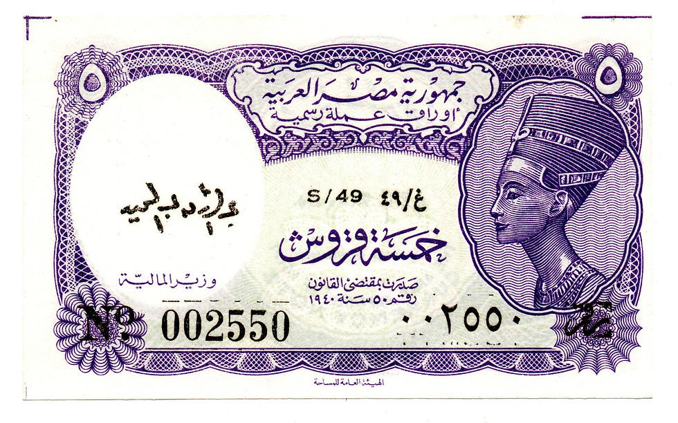 1940 Egypt Government Issue 5 Piastres Pick#163 edge damage, stains, folds