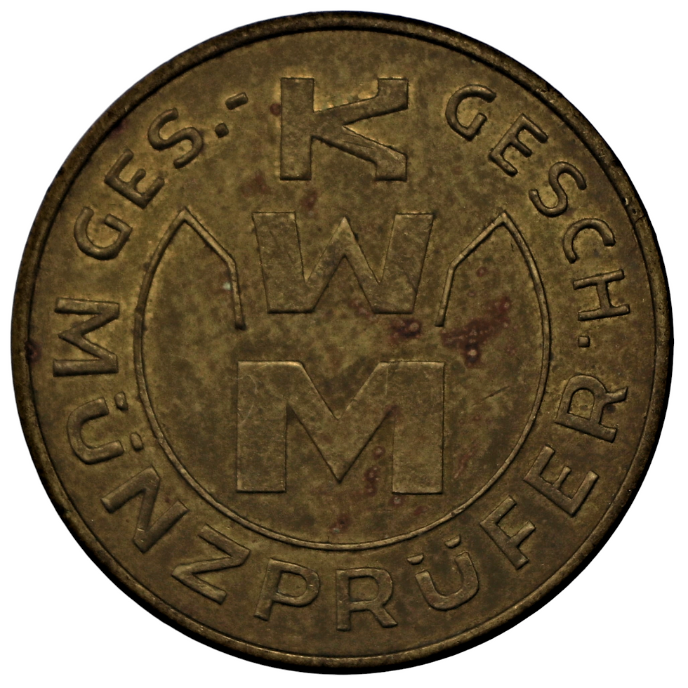 ND German KWM Ges. Gesch. Münzprüfer Token/Apparatebau K W Müller Braunschweig